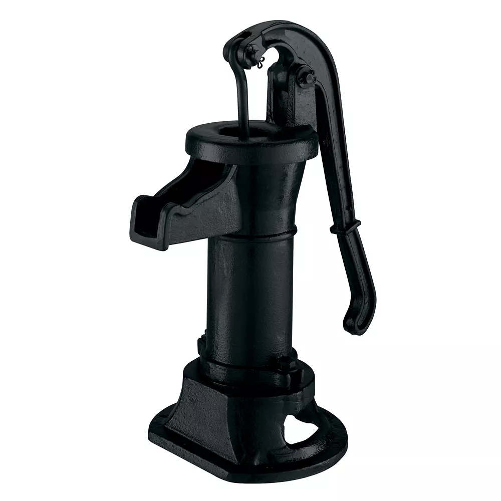 The Cast-Iron Pitcher Pump is specifically designed for shallow well applications to 25 ft. or less. The utility water pump includes an adjustable cap for optional handle positions and a pitcher spout that holds the pail for easy operation. This utility transfer pump offers simple lever action. This pump comes in a black color. It also comes backed by a 90 day limited warranty for purchasing assurance.- Utility transfer pump is designed for water