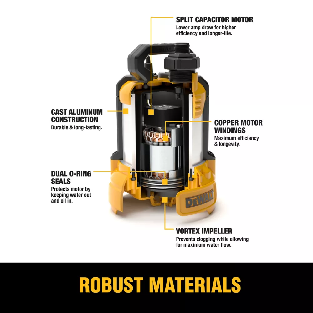 DeWALT 1/3 HP 115V Electric Utility Pump 75 GPM Cast Aluminum Submersible Sump Pumps Farm & Ranch