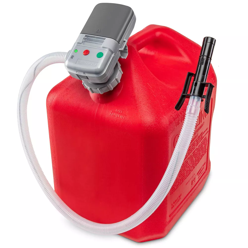 Pump it up. The greatest fuel-powered tools deserve the best fueling system. Treat your tools right with the DeWay Attachable Battery-Powered Gasoline Transfer Pump. Pump non-corrosive liquids in your equipment with the DeWay Attachable Battery-Powered Liquid Transfer Pump. This fluid pump works with several types of machine-powering liquids like gasoline, kerosene, and diesel. The long, flexible hose makes siphoning liquids easy and comfortable. And with the attachable construction that enables you to screw the fluid transfer pump onto a tank, you never have to worry about spills or instability. The battery powered fuel transfer pump is portable, lightweight design makes it easy to use wherever you need it. Made from durable, high-quality plastic, this pump is built to last and is a reliable part of your toolkit. Your tools help you get the job done right. Fuel them up right with the DeWay Attachable Battery-Powered Portable Fuel Pump.- Built-in adapter screws directly onto any standard gas can for no-spill siphoning