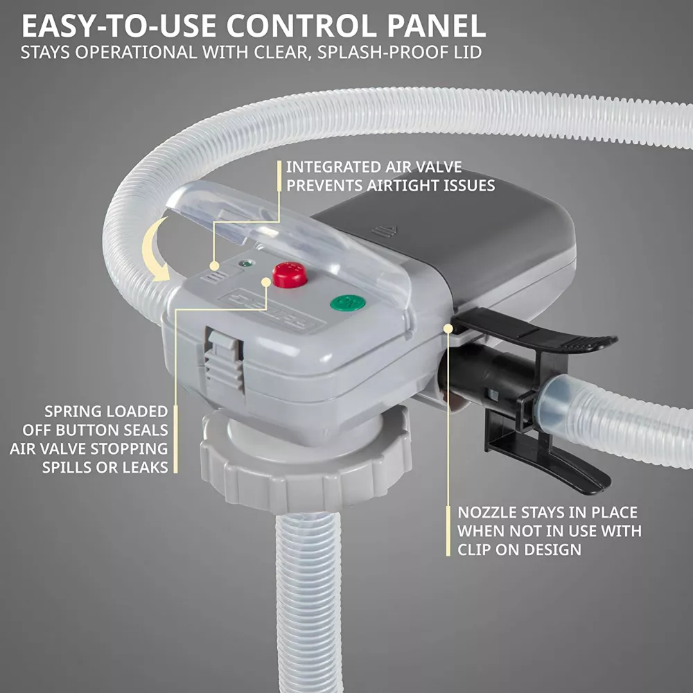 - The spring loaded OFF button seals the air valve, stopping and preventing spills or leaks