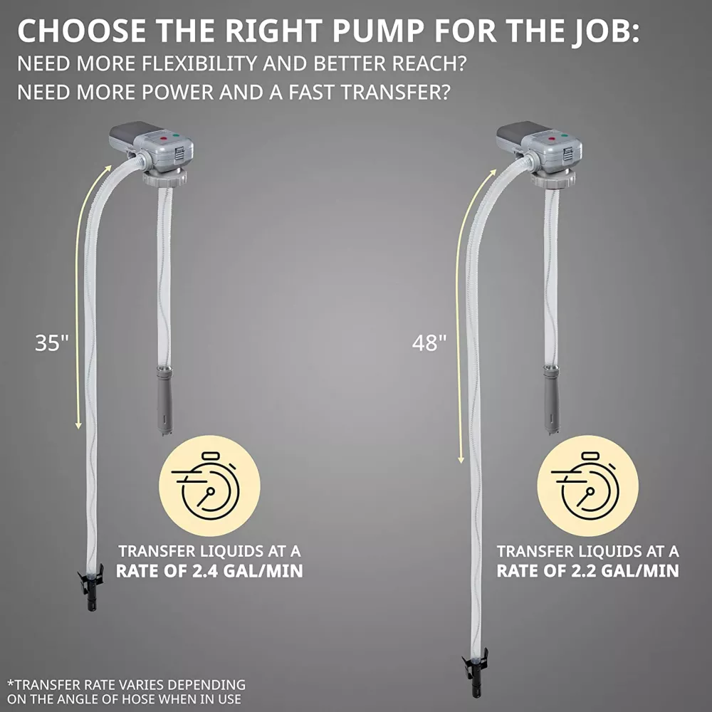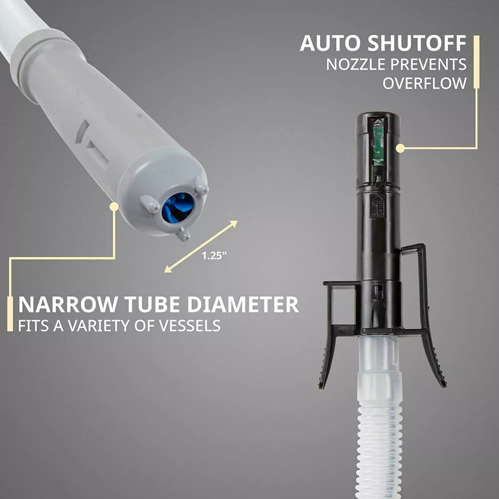 - The narrow tube diameter of this transfer pump makes it able to fit a wide variety of vessels