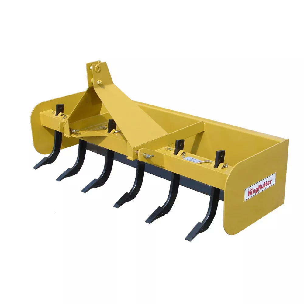 King Kutter's Box Blades are proven performers in the field. The box blades have a heavy duty, all welded construction, with a category 1, quick hitch compatible hitch that makes this box blade great for homeowners, farmers, and landscapers. Whether you're building a road, grading a yard for sod or grass seed, or just moving dirt, a King Kutter Box Blade will get the job done for years to come.- Category 1, 3-point quick hitch compatable hitch