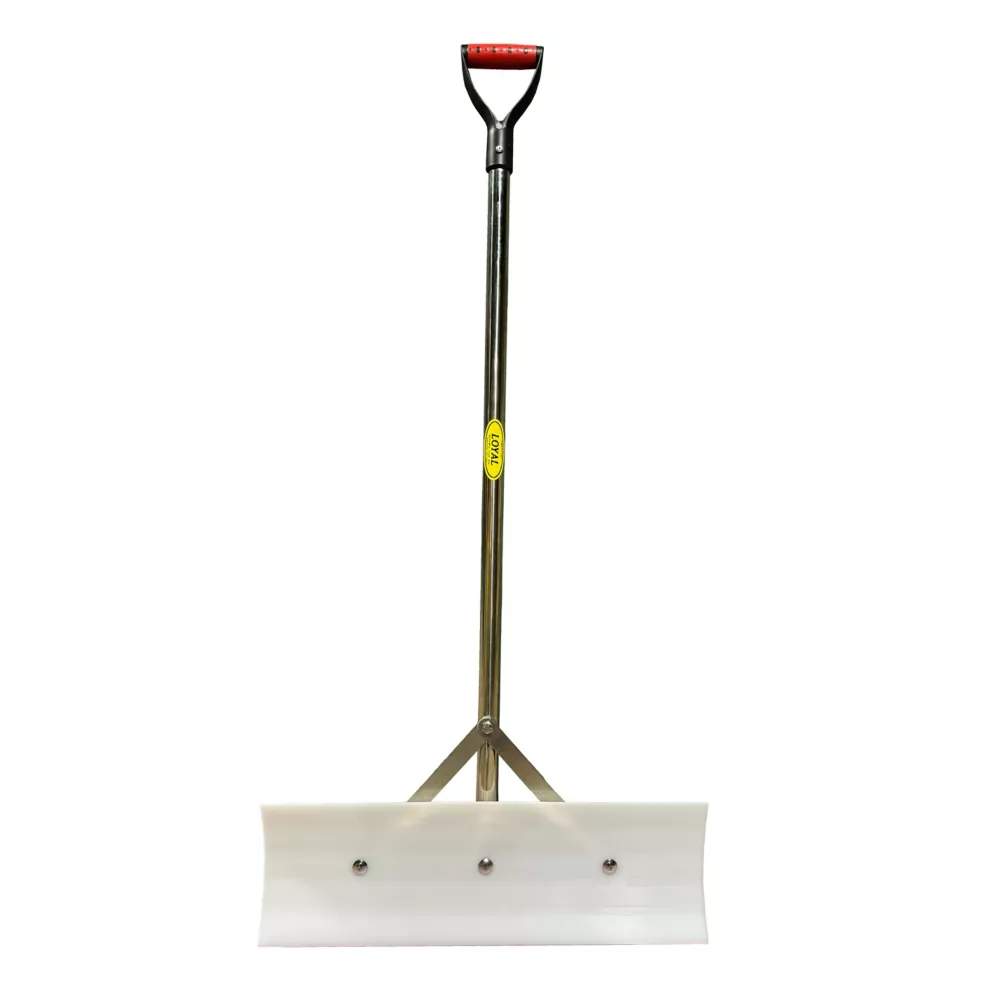 The Loyal 24" Poly Snow Pusher will help you easily clean your driveway or sidewalk! The long-lasting, durable poly-blade withstands harsh winter conditions without damaging your driveway or sidewalks. The smooth surface ensures snow slides off effortlessly, reducing resistance and making each push more effective. The strong stainless-steel handle features a comfortable plastic D-Grip to lessen fatigue while clearing snow.- High-quality poly blade is tough enough to handle the heaviest snow while remaining lightweight.