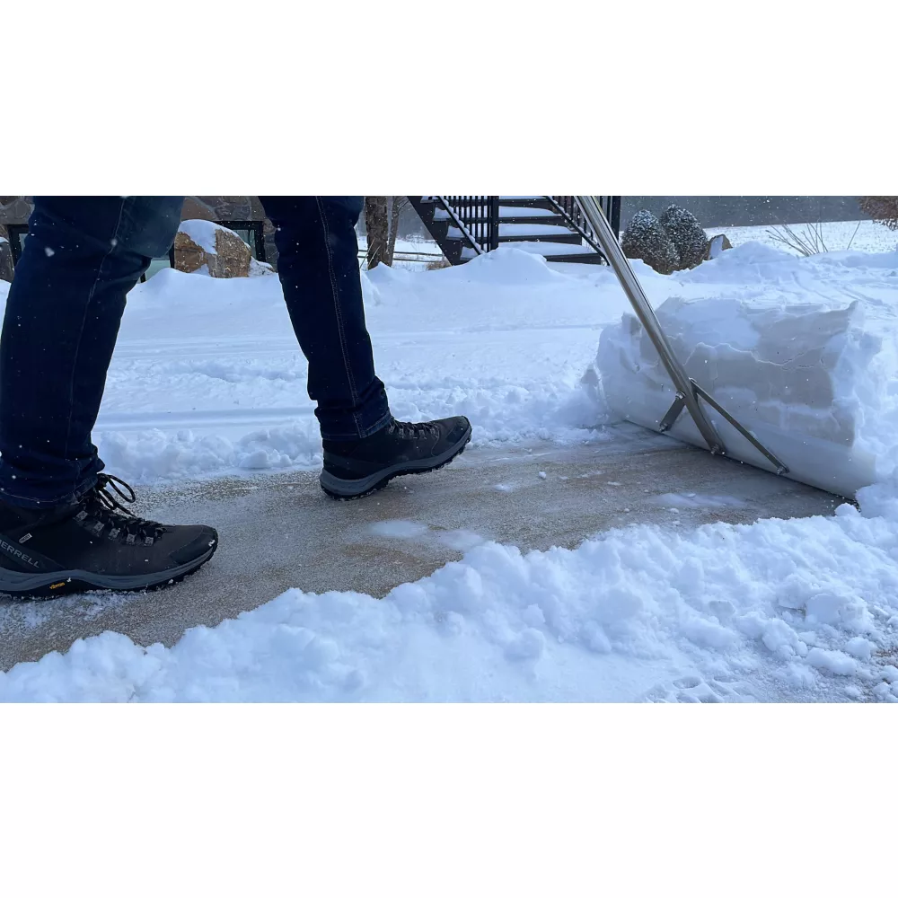Features | Sturdy stainless steel handle combined with durable poly blade result in a tough tool to clear out snow. |