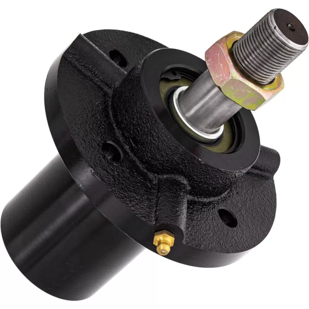 The purpose of the Spindle is to control the safe rotation of the mower blade during operation. The spindle is often made of aluminum on residential mowers and steel on commercial mower decks. Much like a rotating pin in other applications, the spindle is designed to break if the blade hits a hard object to protect the deck shell from damage. The self-tapping screws required for installation (usually sold separately) will create the threads as they are drilled into the bare holes in the spindle. OakTen offers one year warranty for all the deck spindles sold, verify the OEM part number by referring engine model number and the parts manual.- Replace OEM Numbers: 10161 300441