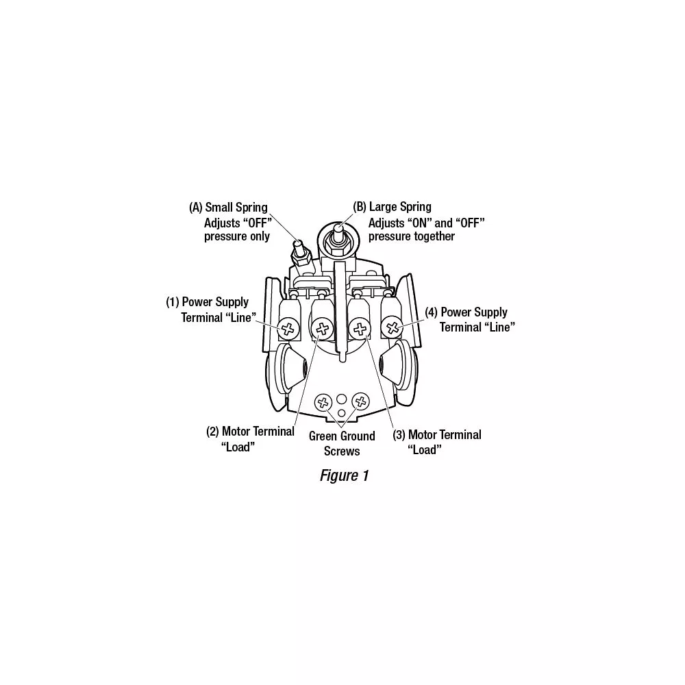 - 2-spring design of pump pressure switch allows for adjustment of cut-in and cut-out pressure settings