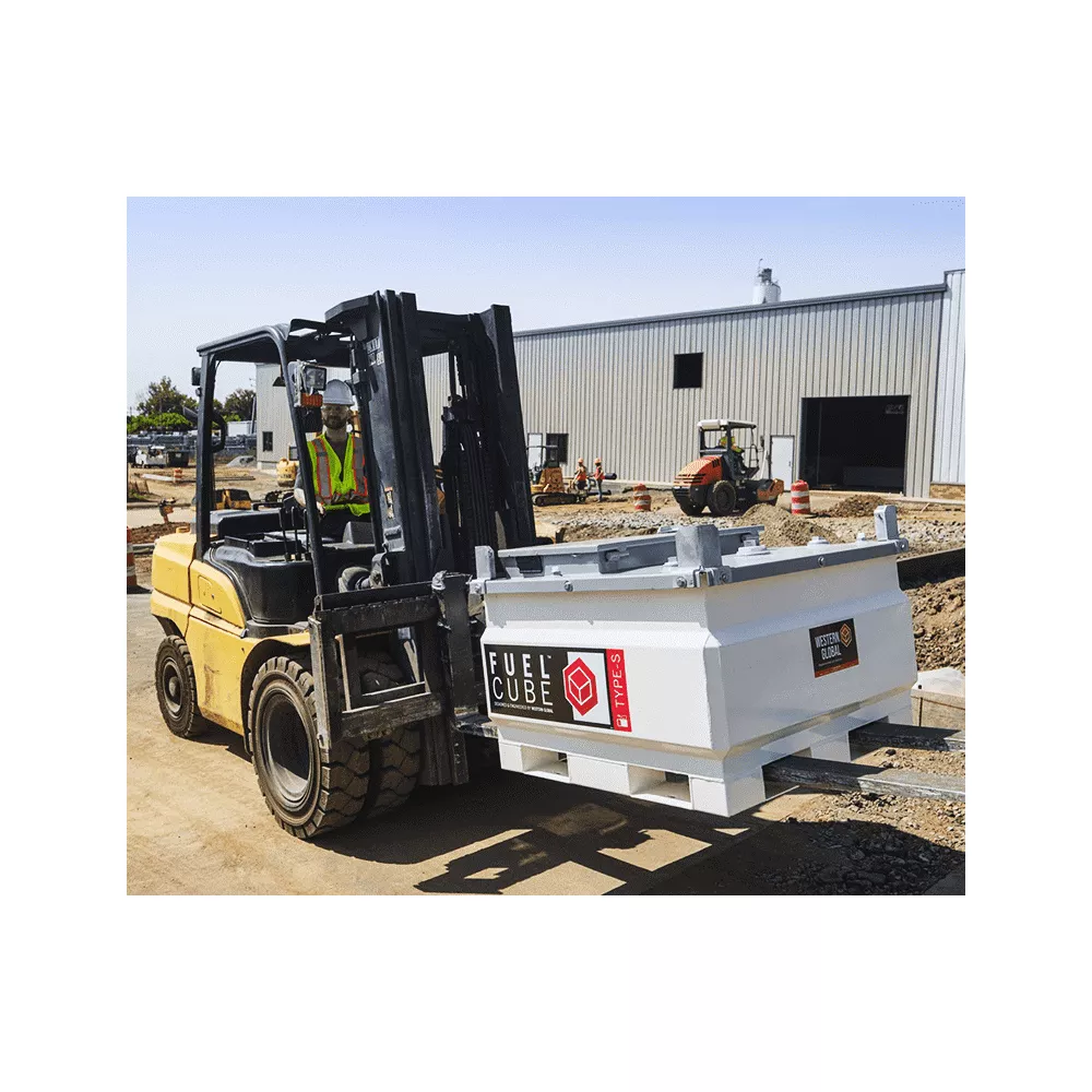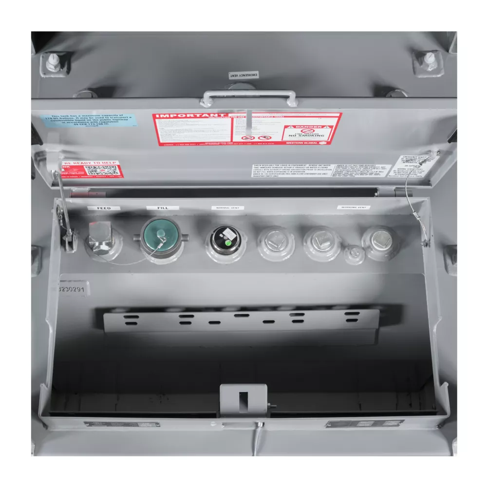 Our Western Global 119 gal. Steel FuelCube Type-S Fuel Tank for Diesel is designed for convenience and security. The diesel fuel tank is a versatile, compact tank that can be used as an alternative to a standard 100 gal. truck slip tank and is the smallest capacity in Western Globals range. The portable FuelCube Type-S can be paired with a pump and is designed to refuel small to mid-sized equipment. Put it in the back of your truck to create a portable refueler or drop it on the job site to create an on-site fueling station. The fuel tank for diesel provides 110% containment; just what you need when you are on the move. At 119 gal., you can transport your diesel fuel safely inside your transfer tank without needing hazardous material placarding. The FuelCube Type-S transfer tank does not require hazmat placarding as this fuel transfer tank is classified as a non-bulk package for the purpose of 49 CFR 173, where diesel fuel can be transported without the requirement of hazmat placarding (pursuant to 49 CRF 173.150(f)).- Lockable equipment cabinet keeps equipment and ports contained