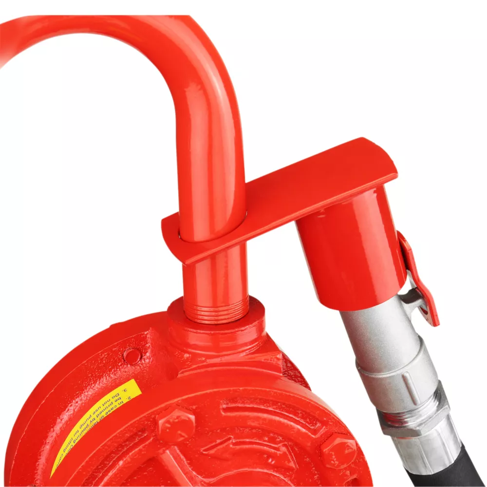 This cast iron rotary pump was designed with professionals in mind and dispenses at a rate of 1 gallon per 13 strokes. This pump is designed to thread into 2-inch bung openings on 15-55-gallon drums. The spout has an 8-foot delivery hose with integrated hang hook and includes a 3-piece suction tube and water deflector to keep out unwanted debris.- Professional Grade Construction: Heavy-Duty cast iron construction allows for maximum lifespan.