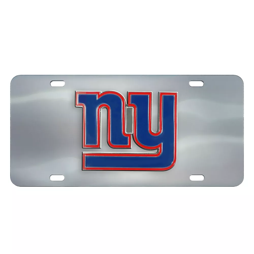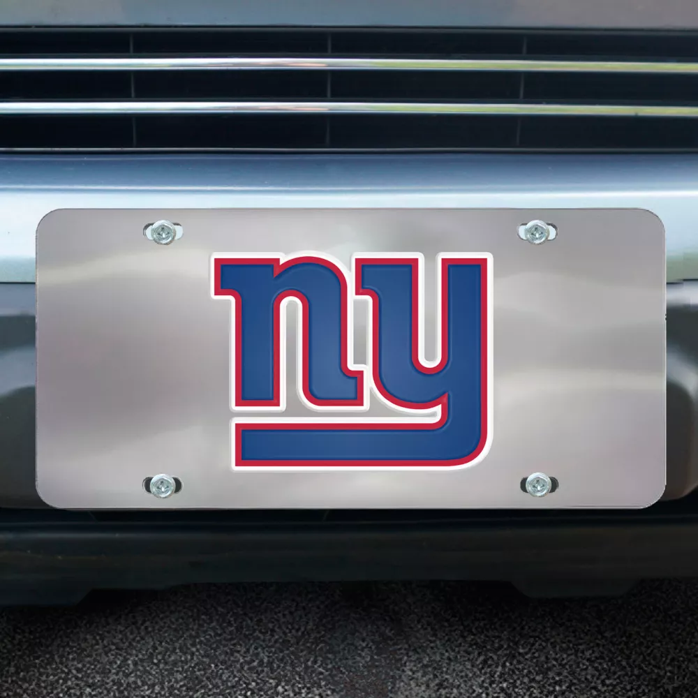 Enhance the exterior of your vehicle and show everyone who your favorite team is with a stainless steel Fanmats New York Giants Diecast License Plate by Sports Licensing Solutions. The chrome plated and 3D full color New York Giants logo will positivity pop, making the front of your vehicle very attention grabbing. Since the plate is stainless steel and the logo is made from enamel plated metal, the die cast plate can withstand any weather conditions. The plate includes 4 pre drilled holes for easy installation, but also make sure there is a secure fit so that there is no rattling while driving. Make sure your plate and logo stay looking new by applying standard vehicle wax.- Made of stainless steel with a durable finish that resists the elements