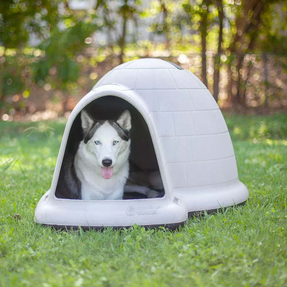 - Long lasting igloo shaped dog house can be perfectly paired with the Petmate Indigo Dog House Door or Pad