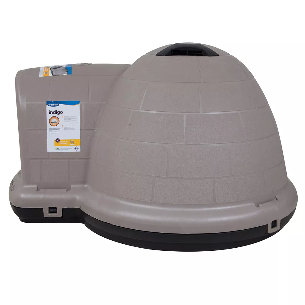 The Petmate Dog House protects your dog from outdoor elements. This large dog house features an exclusive, patented dome design that keeps the house stable in high winds and naturally sheds snow and other debris that could collect on top. This long lasting and durable igloo shaped dog house can be perfectly paired with the Petmate Indigo Dog House Door or Pad. It's recommended for dogs weighing 50 to 90 lb. Made in the USA.- Dog house features a roof-top ventilation to promote good air circulation